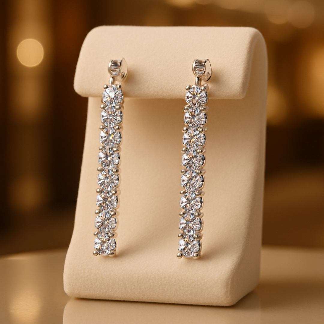 Every detail of The Velisse Cascade of Stars whispers luxury — hand-set moissanite stones radiating brilliance with every movement. Not just earrings, but an unspoken statement of refinement, crafted for the moments you want to be unforgettable.