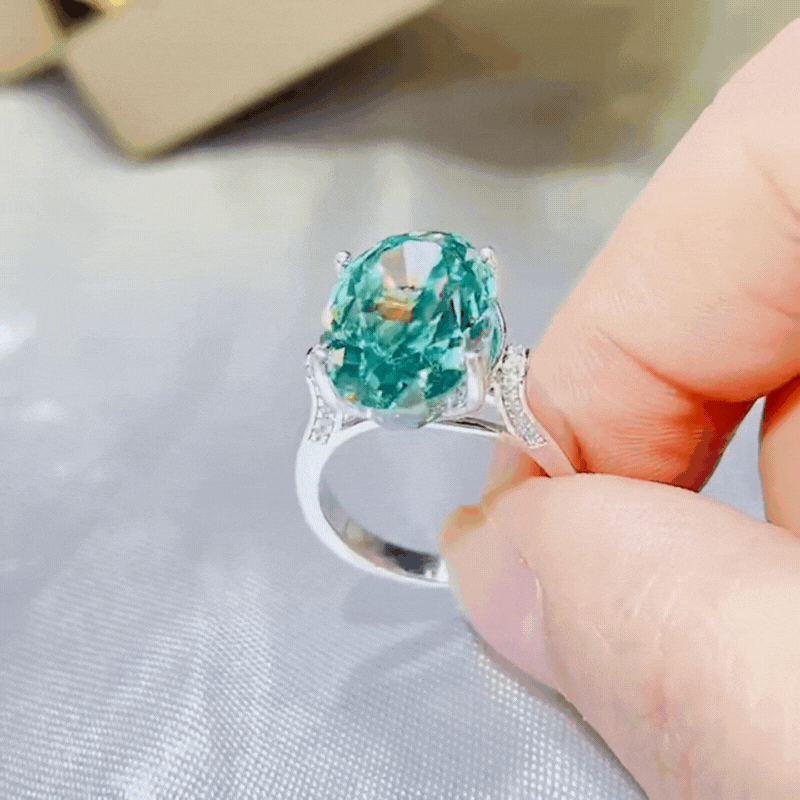 The Velisse Enchanted Mint” is not just a ring—it’s a statement of rare beauty. The mint-green moissanite catches the light with an otherworldly glow, evoking the calm of ocean depths and the sparkle of hidden treasures. Designed for the woman who carries her own kind of magic, it’s a jewel that whispers elegance and radiates confidence.
